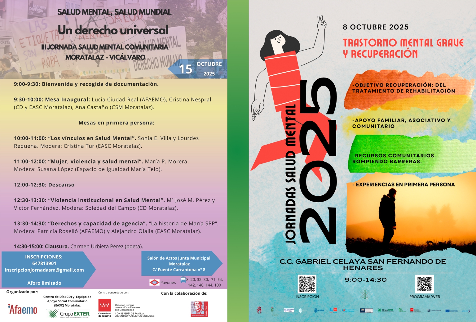 Tendrá lugar el miércoles día 15 de octubre de 2025, en el salón de actos de la Junta Municipal de Moratalaz, con motivo del Día Mundial de la Salud Mental.
